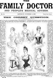 Keywords: TheFamilyDoctorDec21 1889page255.png Image TheFamilyDoctorDec21_1889page255cut png THE FAMILY DOCTOR AND PEOPLE'S MEDICAL ADVISER No 251 SATURDAY DECEMBER 21 1889 PRICE ONE PENNY THE CORSET QUESTION SIR --I now send you my promised sketches of the pernicious and proper shapes for corsets what I may call the hygienic shape for tight stays This may seem to many of your readers a contradiction in terms but when one sees the vast quantity of badly - shaped corsets that are the cause of half the ills ascribed to tight-lacing The properlyshaped are distinctly hygienic compared with the badlyshaped The shape besides varying according to the natural form of the wearer should be formed on certain common sense lines thus -- The waist should be in ita natural place There should be plenty of room for the chest The curve at the waist should not be too sharp The corset should go well down over the hips The busk should be flexible at the top and firm at the bottom The front should support the bust We will see how far the requirements are adhered to in the sketches of types annexed What I have called the Flat Chest is too often found among cheap stays particularly in the country and with the old fashioned nonfront fastening It cannot be too strongly condemned The High Curve is a slight exaggeration upon another common form and of course cruelly contracts the ribs and all vitals therein and would cause a host of troubles to liver stomach kidneys c not to mention the lungs and heart The Long V was the form very common in Hogarth's time but it contracts the ribs a great deal too much for tight lacing or even ordinary wear though it has a nice appearance and is much to be preferred in the matter of health to the other two It is not a form of cheap stay The two Hour-glass forms long and short are again still better particularly the short They have both the objection of being too sharply curved at the waist and not spreading out sharply enough over the hips thus pressing the waist up a little They also particularly the long form are not eased to the shape of the ribs They unduly squeeze the lower ribs without any corresponding advantage of form This is of course less marked with the short Hour-glass --that is one of the easiest shapes to wear The Hygienic Curve is nicely eased to the ribs and hips and only small where the body can easiest stand pressure without harm It is shown with shoulder-straps which I think ought to be put to all stays to draw the shoulders back and prevent the pernicious hahit that so many women have of leaning the body forward on the busk when tired This is the most fruitful source of indigestion and a stooping habit To all the advantages of this style of form may be added last but certainly not least a most graceful form full of Hogarth's line of beauty viewed from every direction Hoping that you may be able to find use for the above remarks and for the drawings I am yours faithfully SCIENCE AND ART VOL X Drawings of women in corset Tightlacing The Family Doctor 1889 from Science and Art PD-Art Artworks missing infobox template |