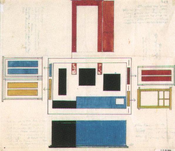 Keywords: Theo van Doesburg 241.jpg Artwork Creator Theo van Doesburg 1921-08-18 Indian ink gouache transparent paper cm 26 5 30 5 Institution Museum Drachten 1921 8 18 color image object history - 1921-08-18 1966 Cees Rienks de Boer 1881-1966 Drachten ProvenanceEvent 1958 gift LangSwitch das the au het Museum Smallingerland today Museum Drachten Drachten Cees Rienks de Boer Drachten exhibition history Dada in Drachten D11 Theo van Doesburg schilder en architect 11 credit line Kleukompositie der / <u>keukens</u> middenstandswoningen / Drachten <u>architect C de Boer</u> / ontw Th v Doesburg Ober-Weimar / 18 8 1921 - bottom right nl Indien aanrecht van boven steen of mar- / mer is dan blauw als aangegeven / lint op kaartje II Indien van / hout dan blauw verven Ook / zijkanten Kastjes van binnen / <u>alle</u> <u>wit</u> De zwarte kastjes / ook wit van binnen verder deze / partij ook van boven zwart - bottom left nl Trap en gangdeur / Trapdeur wit met blauwe paneelen / indien glas in de deur is aangebracht / dit glas ook blauw - / Gangdeur wit deurhout en kozijn / evenals Trapdeur doch de paneelen / geel top left nl SCHOORSTEEN indien van steen / geglazuurd <u>helder</u> <u>rood</u> Indien / van hout dan gevervd als bijgaande / aanduiding ook zijkanten beide / rood Indien binnenvlak van <u>tegels</u> / wordt deze tegels <u>wit</u> top right nl Deur naar de plaats / wit kozijn en deur- / hout met roode paneelen / <u>Raam</u> der keuken <u>alle</u> / houtwerk <u>geel</u> center right nl C R de Boer / Architect B N A / Stationsweg 60 DRACHTEN bottom right nl 7 number bottom left ~ accession number 578 internet PD-old Interior designs by Theo van Doesburg 19210818 Museum Drachten Doesburg |