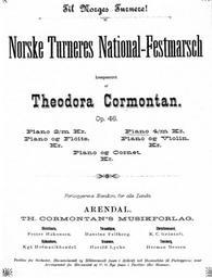 | Keywords: Theodora Cormontan Publication.png en This file is from the book MUSIKKHANDEL I NORGE FRA BEGYNNELSEN TIL 1909 Music Publishing in Norway from the Beginning Until 1909 by Kari Michelsen The author scanned the image from from a document printed in 1879-1886 held in the archives of the Aust-Agder kulturhistoriske senter in Arendal Norway http //www hf uio no/imv/forskning/prosjekter/norgesmusikk/musikkhistarkiv/notetrykk/KariM_bok/KariM_hele pdf Chapter 10 p 217 Aust-Agder kulturhistoriske senter Arendal 1870 PD-old-70-1923 Theodora Cormontan Organists from Norway Sheet music publishers cc-by-sa-3 0 |