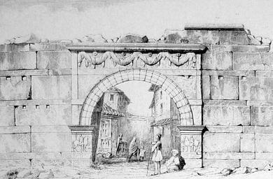 Keywords: Thessaloniki Golden Gate Daumet.jpg La Porte d'Or à Thessalonique gravure de l'arc de triomphe incorporé dans le rempart oriental de la ville L Heuzey et L Daumet 1867 L Daumet ; scan by Marsyas PD-old Engraving of Thessaloniki 1867 Ancient Roman gates in Greece Thessaloniki Historical images of Greece Thessaloniki |