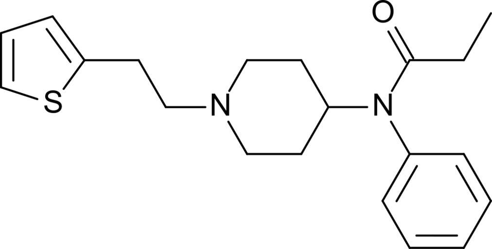 | Keywords: Thiofentanyl.svg Own work created with BKchem based on Image Thiofentanyl png en wikipedia Ronhjones CommonsHelper 2007 08 03 first version ; 2011 07 14 last version Surachit wikipedia en Surachit Original upload log page en wikipedia Thiofentanyl svg 2011-07-14 21 15 Edgar181 128×238× 20915 bytes <nowiki>fixed svg bug</nowiki> 2007-08-03 07 39 Surachit 128×238× 11341 bytes <nowiki> Own work created with BKchem based on Image Thiofentanyl png Licensing </nowiki> N-substituted anilides Opioids Receptor agonists Piperidines Thiophenes |