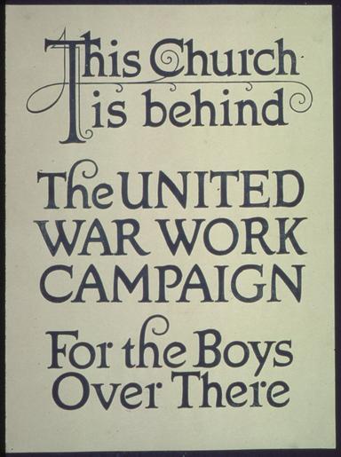 | Keywords: "This Church is behind. The United War Work Campaign For The Boys Over There." - NARA - 512696.tif Scope and content General notes 512696 Local identifier 4-P-258 U S Food Administration Educational Division Advertising Section 01/15/1918 - 01/1919 Still Picture Records Section Special Media Archives Services Division NWCS-S National Archives at College Park 8601 Adelphi Road College Park MD 20740-6001 other date circa 1917 1919 Record group Record Group 4 Records of the U S Food Administration 1917 - 1920 Record group ARC 333 World War I Posters compiled 1917 - 1919 Series ARC 512439 File unit File unit ARC Variant control numbers NAIL Control Number NWDNS-4-P-258 yes Other versions <gallery> File This_Church_is_behind _The_United_War_Work_Campaign_For_The_Boys_Over_There _-_NARA_-_512696 tif tif File This_Church_is_behind _The_United_War_Work_Campaign_For_The_Boys_Over_There _-_NARA_-_512696 jpg jpg </gallery> NARA-cooperation PD-USGov World War I posters of the United States United States Food Administration NARA TIF images with categorized JPGs |
