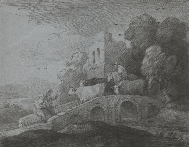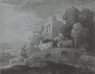 | Keywords: Thomas Gainsborough - Wooded Landscape with Herdsman Driving Cattle over a Bridge, Rustic Lovers and Ruined Castle - Google Art Project.jpg  IR 230/33 Inscription _Signed_and_Dated en Not signed not dated en Not on View en Soft-ground etching on medium slightly textured blue wove paper en birds cattle cows horse animal man woman shepherds water tower building division bridge trees building genre subject landscape special url_id vAHojuZ-v-TOKQ PD-old-100-1923 1788 Prints by Thomas Gainsborough Collections of the Yale Center for British Art Google Art Project works by Thomas Gainsborough |