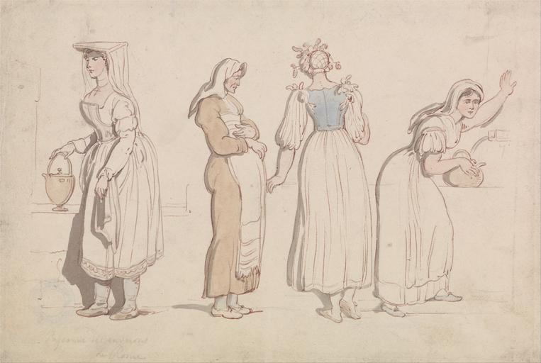 | Keywords: Thomas Rowlandson - Four Women at a Well in Rome - Google Art Project.jpg  Inscribed in graphite lower left Paysanne des environs de Rome ; in graphite verso lower left Rowlandson ; in royal blue ink verso lower right Paul Mellon Collection seal 2/6 in graphite Inscription _Signed_and_Dated Not signed not dated Not on View Watercolor with pen and red-brown and brown ink and graphite on medium slightly textured blued white wove paper women wall fountain headdress dresses aprons main garments jug genre subject kettle special url_id tAH4iQ8qM8BENA PD-old-100-1923 1827 Drawings and watercolours by Thomas Rowlandson Google Art Project works by Thomas Rowlandson |
