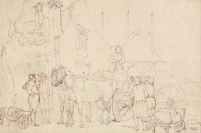 | Keywords: Thomas Rowlandson - Loading a Waggon - Google Art Project.jpg Inscribed in graphite lower right D28137 Inscription _Signed_and_Dated Not signed not dated Not on View Pen and red-brown and gray ink over graphite on medium slightly textured cream wove paper horses animals loading men chimney architectural element wheels house buildings carts wagons genre subject special url_id kQGfup5ignA5Pg PD-old-100-1923 1827 Drawings and watercolours by Thomas Rowlandson Google Art Project works by Thomas Rowlandson Horse-drawn wagons in art |