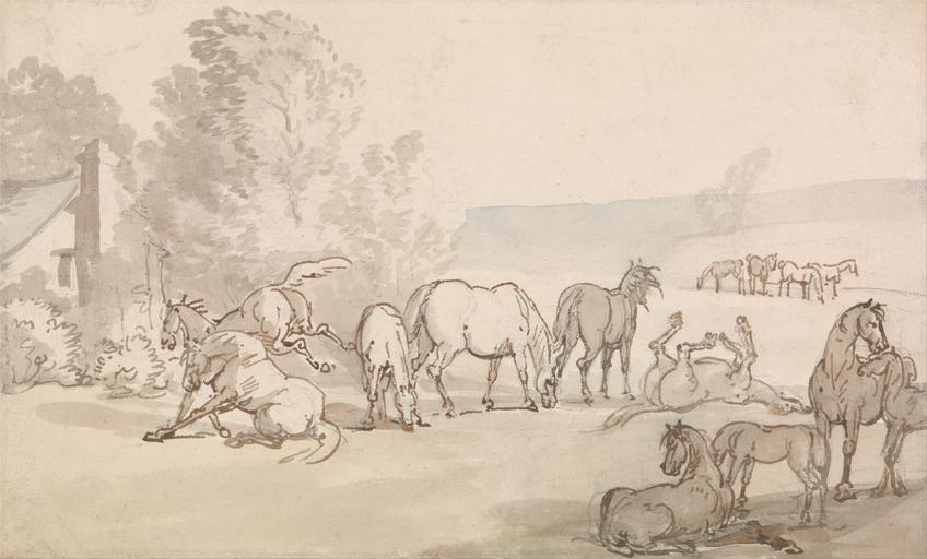 | Keywords: Thomas Rowlandson - Mares and Foals in a Field - Google Art Project.jpg No inscription Inscription _Signed_and_Dated Not signed not dated Not on View Pen and red-brown ink and graphite with wash on moderately thick smooth blued white wove paper field sky mares foals animal art house trees special url_id XAHiZPS7tKIR6A PD-old-100-1923 1827 Drawings and watercolours by Thomas Rowlandson Google Art Project works by Thomas Rowlandson | ||||