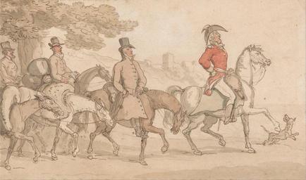 Keywords: Thomas Rowlandson - The Military Adventures of Johnny Newcome - Google Art Project.jpg Inscribed in graphite lower right Rowlandson Inscription _Signed_and_Dated Not signed not dated Not on View Watercolor with pen and gray and brown ink on moderately thick moderately textured beige wove paper dog animal horses animals soldier men military the tree hats genre subject special url_id TgFQN3shMfGccg PD-old-100-1923 1827 Drawings and watercolours by Thomas Rowlandson Google Art Project works by Thomas Rowlandson
