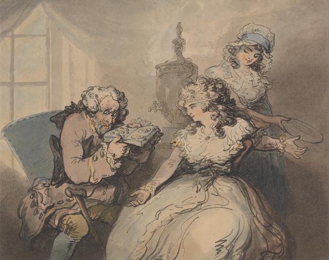 | Keywords: Thomas Rowlandson - A Pawnbroker with His Client - Google Art Project.jpg No inscription Inscription _Signed_and_Dated Not signed not dated Not on View Watercolor with pen and gray and black ink over graphite on moderately thick moderately textured beige laid paper sitting maid client man women standing window chairs bonnet jewelry eyeglasses cane tea urn genre subject special url_id xgE60e1bGiUDog PD-old-100-1923 1827 Drawings and watercolours by Thomas Rowlandson Google Art Project works by Thomas Rowlandson |