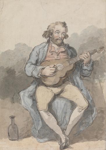 Keywords: Thomas Rowlandson - Rogero - Google Art Project.jpg Inscribed in blue ink verso lower right PAUL MELLON COLLECTION collector's stamp; in graphite verso lower right 2758 Inscription _Marks watermark similar to Shorter 53 but without date and inscribed in an oval Inscription _Signed_and_Dated Not signed not dated Not on View Watercolor with pen and brush in gray ink on medium slightly textured blued white laid paper blue guitarist man coat bottle guitar special url_id 7QE5QbhYsT-pzg PD-old-100-1923 1827 Drawings and watercolours by Thomas Rowlandson Google Art Project works by Thomas Rowlandson Portraits with guitars