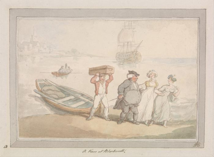 | Keywords: Thomas Rowlandson - A View at Blackwall - Google Art Project.jpg  Inscribed in dark gray ink on mount lower center A View at Blackwall ; inscribed in dark gray ink on mount lower left 42 ; in dark gray ink lower right on mount WE ; verso in royal blue ink lower center Paul Mellon Collection seal x written in graphite in middle of Paul Mellon seal; in graphite lower right D 601 ; with pen in dark gray ink upper right No 89 ; In brown ink upper left 10- 15- 5- 36 ; in brown ink center left 21 5 4 10 20 80 123 5 36 69 unreadable numbers in graphite Inscription _Marks watermark similar to Heawood 3460 except the date ends with 26 and appears below the name Inscription _Signed_and_Dated Not signed not dated Not on View Watercolor with red-brown and gray ink over graphite with gray wash lines; verso variously colored splotches of watercolor and brown ink on wove paper / laid paper support men women sailors water shore landform suitcase ship view marine art boat special url_id 8wHnubuEIbLLyw PD-old-100-1923 1827 Drawings and watercolours by Thomas Rowlandson Google Art Project works by Thomas Rowlandson |