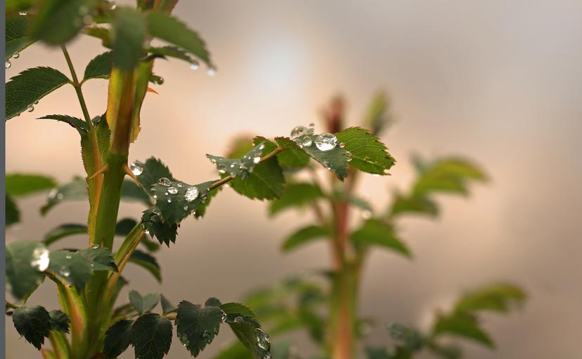 Keywords: thorns rose leaf prickly nature beauty green plant flowers drip spiny summer flower rosebush drop of water dewdrop back light