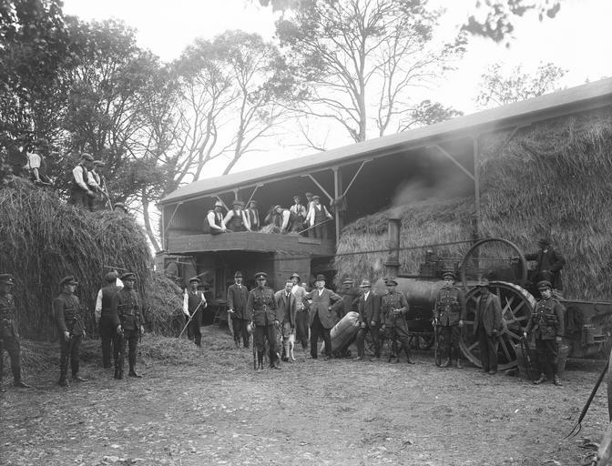 | Keywords: gracedieu gracediew waterford ireland munster thrashing threshing thresher farming hay free state soldiers freestatesoldiers soldiers uniforms guns rifles bayonets rake pitchfork dogs smoking workers labourers barn ricks caps steam thursday 27th september 1923 1920s twenties 20th century 20thcentury a.h. poole ahpoole arthur henri poole arthurhenripoole poole collection poolecollection glass negative glassnegative national library of ireland nationallibraryofireland irish farmers union irishfarmersunion itgwu special infantry corps specialinfantrycorps strike farm labourer farmlabourer lee enfield rifle leeenfieldrifle richard hornsby richardhornsby steampower blackandwhite monochrome outdoor black and white This is an intriguing little one! We've been at Gracedieu in Co. Waterford before (or Gracediew, as it's sometimes spelled), but never accompanied by an armed guard. The Irish Civil War was "over" for nearly 4 months before this photo was taken, so why the need for Free State soldiers? P.S. A Mr Kierney ordered/paid for this photograph. Photographer: Poole Photographic Studios, Waterford Date: Thursday, 27 September 1923 NLI Ref: POOLEWP 3123 You can also view this image, and many thousands of others, on the NLI’s catalogue at catalogue.nli.ie This is an intriguing little one! We've been at Gracedieu in Co. Waterford before (or Gracediew, as it's sometimes spelled), but never accompanied by an armed guard. The Irish Civil War was "over" for nearly 4 months before this photo was taken, so why the need for Free State soldiers? P.S. A Mr Kierney ordered/paid for this photograph. Photographer: Poole Photographic Studios, Waterford Date: Thursday, 27 September 1923 NLI Ref: POOLEWP 3123 You can also view this image, and many thousands of others, on the NLI’s catalogue at catalogue.nli.ie |