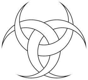 | Keywords: Three-Crescents-Diane-Poitiers.png Three crescents interlaced so as to be incomplete Borromean rings This was the emblem of Diana of Poitiers and her lover Henry II of France see external site http //www liv ac uk/~spmr02/rings/moons html It has also come to be used in the coat of arms of Bréval see Image Blason ville fr Bréval Yvelines svg and Crécy-la-Chapelle see Image Blason CrecylaChap svg and in a slightly different form as the emblem or petites armoiries of the city of Bordeaux see en Image Bordeaux30 jpg In recent years it has been taken up by a few neopagans as an alternative version of the symbol Image Triple-Goddess-Waxing-Full-Waning-Symbol png though it has an unfortunate resemblance to a modern biohazard symbol For a version in symbolic colors see Image Three-Crescents-Diane-Poitiers-multicolored png For a solid form of the symbol see the lower corner of Image Religious symbols svg own -- Generated by means of the following PostScript code <pre> 306 396 translate 5 setlinewidth 30 rotate /cresc -75 0 translate 0 0 150 210 150 arc -32 1619076 0 123 2009724 142 5 217 5 arcn closepath def gsave cresc clip stroke grestore gsave 240 rotate cresc gsave 1 setgray fill grestore clip stroke grestore gsave 120 rotate cresc gsave 1 setgray fill grestore clip stroke grestore gsave -75 0 translate 1 setgray 0 0 150 7 42 arc -32 1619076 0 123 2009724 42 7 arcn closepath fill 0 0 150 261 282 arc -32 1619076 0 123 2009724 293 269 arcn closepath fill grestore cresc clip newpath 0 setgray 0 0 150 5 45 arc stroke -32 1619076 0 123 2009724 45 5 arcn stroke 0 0 150 260 283 arc stroke -32 1619076 0 123 2009724 294 268 arcn stroke showpage EOF</pre> 2005 AnonMoos Also ca 1400 the Hungerford family of Farleigh castle in western England used a design of three similarly-interlaced sickles as one of their heraldic badges ; and the arms attributed to Ednywain ap Bradwen founder of the 15th noble tribe of north Wales have three interlaced white serpents on a red shield Reference The Complete Book of Heraldry by Stephen Slater ISBN 1843096986 pages 124 and 191 see also external link http //www liv ac uk/~spmr02/rings/snakes html For another such symbol see Image Snoldelev-three-interlaced-horns png Three-Crescents-Diane-Poitiers full-black png Three-Crescents-Diane-Poitiers svg Diane de Poitiers Goddess movement - Thealogy symbols Wiccan symbols Crescent moon symbols Crescent-shaped incomplete Borromean rings interlacings Images with PostScript source code |