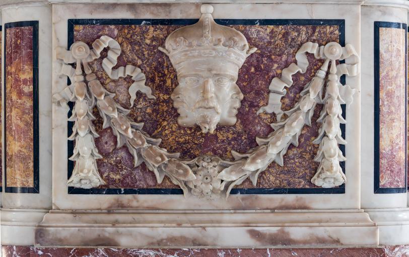 Keywords: Three faces on one head, Santa Maria del Popolo, Rome, Italy.jpg fr Rare relief de la Sainte Trinité Santa Maria del Popolo Rome Italie en Rare relief of the Holy Trinity Basilica of Santa Maria del Popolo Rome Italy on the base of the sepulchral monument for the Trivulzio cardinals 1654 2013-08-24 for photograph own Jebulon 41 911478 12 476408 cc-zero Uploaded with UploadWizard Three faces on one head Reliefs in Rome Reliefs of garlands in Italy Santa Maria del Popolo Rome - Tombs Quality images by Jebulon QualityImage |