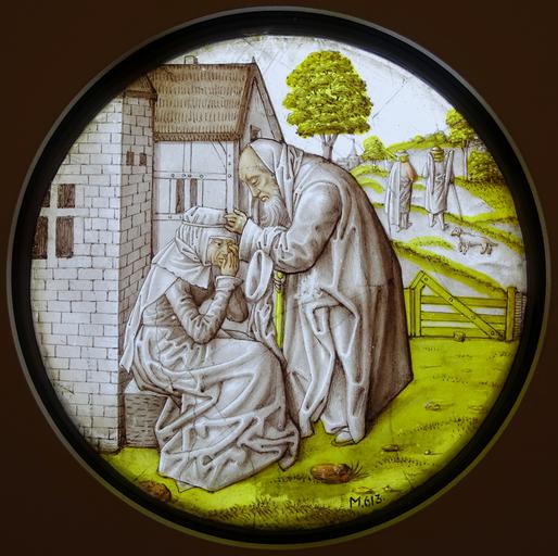 | View Original: | Three Rounels from the Life of Tobias, 1. Tobit comforts Hanna, Southern Netherlands, c. 1500, stained glass - Museum Schnütgen - Cologne, Germany - DSC09853.jpg (3442x3429) | |||