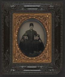Keywords: library of congress libraryofcongress dc:identifier=http://hdl.loc.gov/loc.pnp/ppmsca.27542 dc:identifier=httphdllocgovlocpnpppmsca27542 xmlns:dc=http://purl.org/dc/elements/1.1/ xmlns:dc=httppurlorgdcelements11 u.s. civil war uscivilwar american civil war americancivilwar the civil war thecivilwar civil war civilwar war between the states warbetweenthestates united states of america unitedstatesofamerica u.s.a. usa the union theunion union the north thenorth yankee yankees soldier soldiers round photo border picture frame [Three unidentified soldiers in Union uniforms and Company E, 8th Regiment forage caps] [between 1861 and 1865] 1 photograph : quarter-plate ambrotype, hand-colored ; 16.5 x 14.0 cm (frame) Notes: Title devised by Library staff. Case: Berg, no. 7-23. Gift; Tom Liljenquist; 2010; (DLC/PP-2010:105). Subjects: United States.--Army--People--1860-1870. Soldiers--Union--1860-1870. Military uniforms--Union--1860-1870. United States--History--Civil War, 1861-1865--Military personnel--Union. Format: Group portraits--1860-1870. Portrait photographs--1860-1870. Ambrotypes--Hand-colored--1860-1870. Rights Info: No known restrictions on publication. Repository: Library of Congress, Prints and Photographs Division, Washington, D.C. 20540 USA, hdl.loc.gov/loc.pnp/pp.print Part Of: Ambrotype/Tintype filing series (Library of Congress) (DLC) 2010650518 Liljenquist Family collection (Library of Congress) (DLC) 2010650519 More information about this collection is available at hdl.loc.gov/loc.pnp/pp.lilj Persistent URL: hdl.loc.gov/loc.pnp/ppmsca.27542 Call Number: AMB/TIN no. 5035 [Three unidentified soldiers in Union uniforms and Company E, 8th Regiment forage caps] [between 1861 and 1865] 1 photograph : quarter-plate ambrotype, hand-colored ; 16.5 x 14.0 cm (frame) Notes: Title devised by Library staff. Case: Berg, no. 7-23. Gift; Tom Liljenquist; 2010; (DLC/PP-2010:105). Subjects: United States.--Army--People--1860-1870. Soldiers--Union--1860-1870. Military uniforms--Union--1860-1870. United States--History--Civil War, 1861-1865--Military personnel--Union. Format: Group portraits--1860-1870. Portrait photographs--1860-1870. Ambrotypes--Hand-colored--1860-1870. Rights Info: No known restrictions on publication. Repository: Library of Congress, Prints and Photographs Division, Washington, D.C. 20540 USA, hdl.loc.gov/loc.pnp/pp.print Part Of: Ambrotype/Tintype filing series (Library of Congress) (DLC) 2010650518 Liljenquist Family collection (Library of Congress) (DLC) 2010650519 More information about this collection is available at hdl.loc.gov/loc.pnp/pp.lilj Persistent URL: hdl.loc.gov/loc.pnp/ppmsca.27542 Call Number: AMB/TIN no. 5035 |