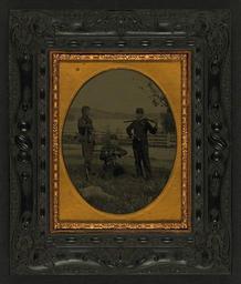 Keywords: library of congress libraryofcongress dc:identifier=http://hdl.loc.gov/loc.pnp/ppmsca.27555 dc:identifier=httphdllocgovlocpnpppmsca27555 xmlns:dc=http://purl.org/dc/elements/1.1/ xmlns:dc=httppurlorgdcelements11 u.s. civil war uscivilwar american civil war americancivilwar the civil war thecivilwar civil war civilwar war between the states warbetweenthestates united states of america unitedstatesofamerica u.s.a. usa soldier soldiers shotgun shotguns piece maker peace s.o.s sos landing coop mark someone owtthere save me... me photo border circle round [Three unidentified young soldiers in uniforms with shotguns, musket, and pipes in a field with a fence in the background] [between 1861 and 1865] 1 photograph : quarter-plate tintype, hand-colored ; 16.2 x 13.7 cm (case) Notes: Title devised by Library staff. Case: Berg, no. 7-21. Gift; Tom Liljenquist; 2010; (DLC/PP-2010:105). Subjects: Soldiers--1860-1870. Military uniforms--1860-1870. Rifles--1860-1870. Pipes (Smoking)--1860-1870. Smoking--1860-1870. United States--History--Civil War, 1861-1865--Military personnel. Format: Group portraits--1860-1870. Portrait photographs--1860-1870. Tintypes--Hand-colored--1860-1870. Rights Info: No known restrictions on publication. Repository: Library of Congress, Prints and Photographs Division, Washington, D.C. 20540 USA, hdl.loc.gov/loc.pnp/pp.print Part Of: Ambrotype/Tintype filing series (Library of Congress) (DLC) 2010650518 Liljenquist Family collection (Library of Congress) (DLC) 2010650519 More information about this collection is available at hdl.loc.gov/loc.pnp/pp.lilj Persistent URL: hdl.loc.gov/loc.pnp/ppmsca.27555 Call Number: AMB/TIN no. 5050 [Three unidentified young soldiers in uniforms with shotguns, musket, and pipes in a field with a fence in the background] [between 1861 and 1865] 1 photograph : quarter-plate tintype, hand-colored ; 16.2 x 13.7 cm (case) Notes: Title devised by Library staff. Case: Berg, no. 7-21. Gift; Tom Liljenquist; 2010; (DLC/PP-2010:105). Subjects: Soldiers--1860-1870. Military uniforms--1860-1870. Rifles--1860-1870. Pipes (Smoking)--1860-1870. Smoking--1860-1870. United States--History--Civil War, 1861-1865--Military personnel. Format: Group portraits--1860-1870. Portrait photographs--1860-1870. Tintypes--Hand-colored--1860-1870. Rights Info: No known restrictions on publication. Repository: Library of Congress, Prints and Photographs Division, Washington, D.C. 20540 USA, hdl.loc.gov/loc.pnp/pp.print Part Of: Ambrotype/Tintype filing series (Library of Congress) (DLC) 2010650518 Liljenquist Family collection (Library of Congress) (DLC) 2010650519 More information about this collection is available at hdl.loc.gov/loc.pnp/pp.lilj Persistent URL: hdl.loc.gov/loc.pnp/ppmsca.27555 Call Number: AMB/TIN no. 5050 |