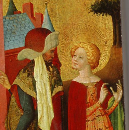 | Keywords: Three windows barbara-altar.JPG en a detail from Barbara altars first painting by Master Francke; Barbara explaining the third window and counting three with her fingers fi Yksityiskohta ensimmäisestä maalauksesta Väittely kolmesta ikkunasta Barbara laskee sormillaan kolmeen Pylkkänen Riitta Sancta Barbara - Pyhän Barbaran legenda in Finnish English German and Swedish Helsinki Kansallismuseo 1966 Master Francke / Meister Francke / Mestari Francke ~ 1410 PD-old-100 Barbara altar | ||||