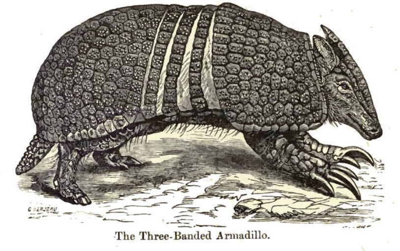 Keywords: ThreeBandArmadilloLyd.jpg Three banded Armadillo Tolypeutes matacus Life and Rocks 1894 Creator Richard Lydekker pd-old PD-old Richard Lydekker Tolypeutes matacus 1894