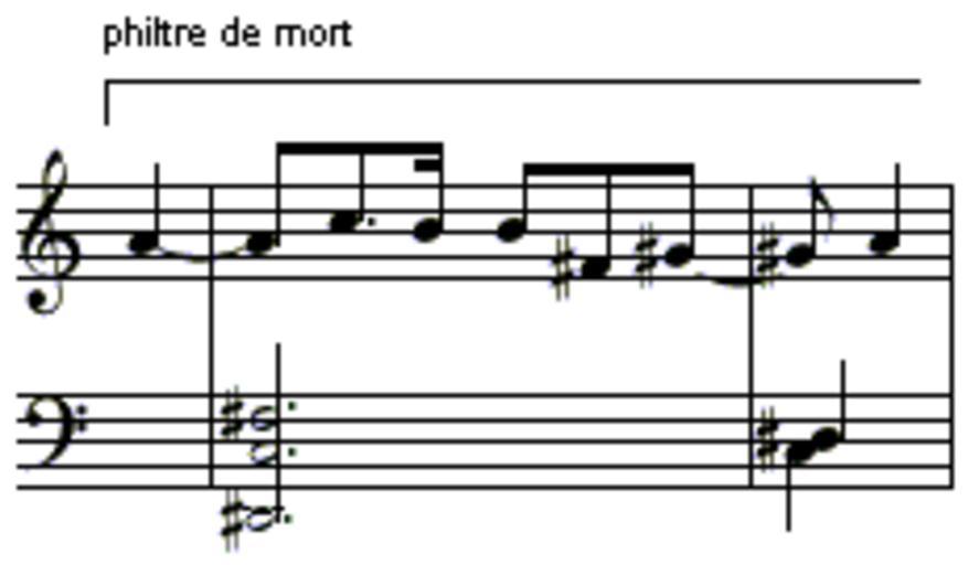 Keywords: Ti philtremort.png This image was copied from wikipedia fr The original description was Copyright Cette image a été créée par Zerioughfe avec MusiXTeX le package de LaTeX qui permet d'écrire de la musique Elle est donc libre de droits Zerioughfe Tristan et Isolde - Motif du philtre de mort loveless Tristan und Isolde Wagner Sheet music of Richard Wagner