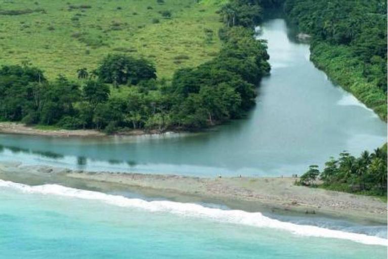 Keywords: TibaraconDuaba2.jpg es Tibaracón del río Duaba own Kaldym1952 2011-09-22 Barras acumulativas Tibaracones entre las desembocaduras de los ríos Duaba y Toa Su longitud es de 3250 m el ancho medio de la franja de arena de sol es de 15 a 20 m los sedimentos son gruesos arena y cantos de color oscuro la pendiente es muy fuerte en su mayor parte La vegetación es de uva caleta almendro y cocotero El agua es tibia y el oleaje es fuerte Nature of Baracoa Cc-zero |