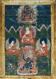 | Keywords: Tibet Three Buddhist teachers.jpg Tibet century 18 mineral paint ink canvas paperboard ; velvet silk cm 62 45 Institution National Museum Warsaw Not on view accession number SKAZmr 69 object history ProvenanceEvent purchase National Museum in Warsaw credit line http //cyfrowe mnw art pl/dmuseion/docmetadata id 18969 from latest show_nav true cyfrowe mnw art pl See below PD-old-100 DEFAULTSORT 1701-1800; Three Buddhist teachers High-resolution images from the National Museum in Warsaw Art of Tibet in the National Museum in Warsaw Thangka from Tibet |
