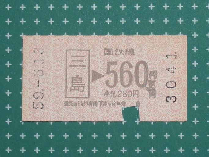 Keywords: Ticket from Mishima to 560yen 19840613.jpg en Ticket from Mishima to 560yen Japanese National Railways Rail tickets of Japan Edmondson railway tickets