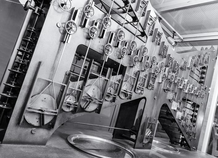 Keywords: 1910 2016 administration atmospheric co-ops coops center center for operational oceanographic products and services centerforoperationaloceanographicproductsandservices coast md maryland noaa national oceanic and atmospheric administration nationaloceanicandatmosphericadministration oceanic oceanographic operational products services silver silver spring silverspring spring states tide predicting machine tidepredictingmachine u.s. us u.s. coast and geodetic survey uscoastandgeodeticsurvey united united states unitedstates analog analog computer analogcomputer antique brains brass chain computer dial gear geodetic high high tide hightide historic history low low tide lowtide machine mechanical metal national ocean old old brass brains oldbrassbrains pulley summation summation chain summationchain survey tide tide predicting machine no. 2 tidepredictingmachineno2 blackandwhite black and white This photo shows the largest of the three sections of Tide Predicting Machine No. 2, a special purpose mechanical analog computer for predicting the height and time of high and low tides. The gears on the left transmit power from the hand crank. The components on the right contribute to the computation of the time of high and low tides. The U.S. government used Tide Predicting Machine No. 2 from 1910 to 1965 to produce its tide predictions. The machine, also known as “Old Brass Brains,” uses an intricate arrangement of gears, pulleys, chains, slides, and other mechanical components to perform the computations. A person using the machine would require 2-3 days to compute a year’s tides at one location. A person performing the same calculations by hand would require hundreds of days to perform the work. The machine is 10.8 feet (3.3 m) long, 6.2 feet (1.9 m) high, and 2.0 feet (0.61 m) wide and weighs approximately 2,500 pounds (1134 kg). The operator powers the machine with a hand crank. The National Oceanic and Atmospheric Administration (NOAA) occasionally displays the machine at its facility in Silver Spring, Maryland. This photo shows the largest of the three sections of Tide Predicting Machine No. 2, a special purpose mechanical analog computer for predicting the height and time of high and low tides. The gears on the left transmit power from the hand crank. The components on the right contribute to the computation of the time of high and low tides. The U.S. government used Tide Predicting Machine No. 2 from 1910 to 1965 to produce its tide predictions. The machine, also known as “Old Brass Brains,” uses an intricate arrangement of gears, pulleys, chains, slides, and other mechanical components to perform the computations. A person using the machine would require 2-3 days to compute a year’s tides at one location. A person performing the same calculations by hand would require hundreds of days to perform the work. The machine is 10.8 feet (3.3 m) long, 6.2 feet (1.9 m) high, and 2.0 feet (0.61 m) wide and weighs approximately 2,500 pounds (1134 kg). The operator powers the machine with a hand crank. The National Oceanic and Atmospheric Administration (NOAA) occasionally displays the machine at its facility in Silver Spring, Maryland. |