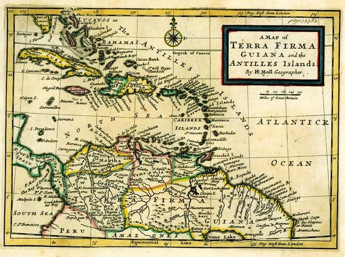 Keywords: TierraFirme.jpg A map of Terra Firma Guiana and the Antilles Islands Mapa de la Tierra Firme Guayana y las Islas Antillas Mapa de 1732 http //www igvsb gov ve/site2007/index php option com_content task view id 90 Itemid 136 Instituto Geográfico de Venezuela Simón Bolívar H Moll 1732 PD-old-100 1732 maps Old maps of the Caribbean Old maps of South America 1732 in South America |