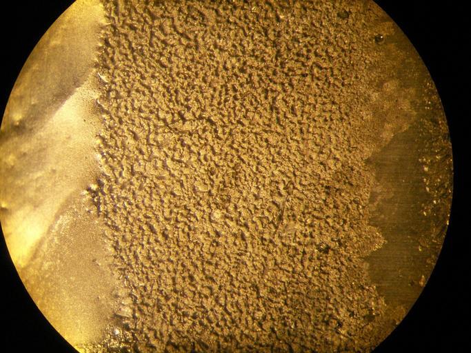 | Keywords: TIG weld etch zone closeup.jpg A closeup micrograph of a TIG weld etch zone on 6061 aluminium pulsed at 200 amps peak current 5 amps sustain current 50 pulse duty cycle AC 65 electrode negative pure argon shield gas These intentionally suboptimal conditions produce an widened etch zone where the normal layer of aluminium oxide has been removed from the surface leaving exposed metallic aluminium capable of being welded Image is approximately 10mm across the field of view; photographed with a Wild M5Z microscope and a Konica-Minolta Dimage X1 digital camera by W S Yerazunis 2005-12-27 own assumed Dr Crash~commonswiki Etching microfabrication Gas tungsten arc welding Welds |