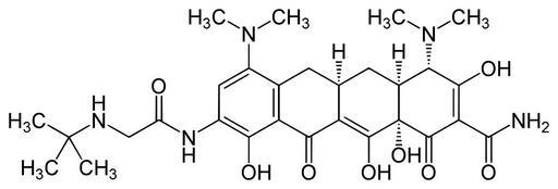 Keywords: Tigecycline structure.svg Chemical structure of tigecycline Self-made; http //www wissenschaftliche-verlagsgesellschaft de/CTJ/CTJ2005/CTJ-2-05/sh-neueantibiotika pdf pdf 2007-03-17 User Yikrazuul; User Mysid Tigecycline