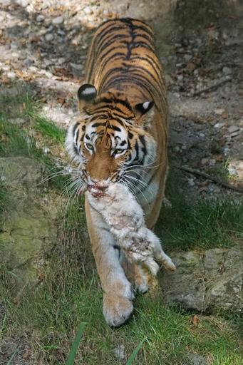 Keywords: tiger amurtiger predator cat carnivores siberian dangerous food prey hare zoo wildlife photography