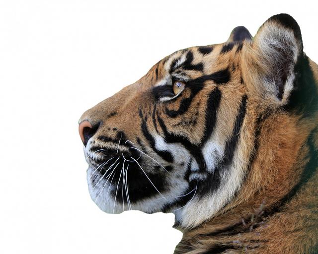Keywords: tiger head face profile close-up beautiful isolated white background animal cat big feline wild wildlife
