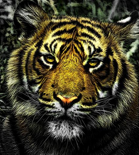 Keywords: tiger head portrait digital art cat's eyes cat nature beauty graphic graphical design computer graphic artwork animal mammal wild life wild life predator
