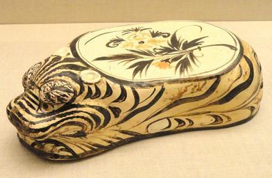 Keywords: Tiger-Shaped Pillow with Bean-Shaped Headrest, Jin Dynasty, China, cizhou-type ware, earthenware with glaze and iron-brown peony scroll - Art Institute of Chicago - DSC00283.JPG Exhibit in the Art Institute of Chicago Chicago Illinois USA This artwork is in the public domain because the artist died more than 70 years ago Photography was permitted in the museum without restriction Daderot 2012-10-10 16 41 56 Daderot cc0 cc0 Ceramic pillows in the Art Institute of Chicago |