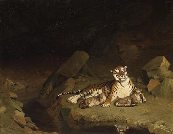 | Keywords: TigerLarge Gérome.jpeg en Tiger and Cubs Oil on canvas 1884 http //www metmuseum org/Works_of_Art/viewOne asp dep 11 viewMode 1 item 36 2E162 2E4 Creator Jean-Léon Gérôme PD-old-100 Oil paintings of tigers Paintings of tigers by Jean-Léon Gérôme 1884 paintings 19th-century paintings of tigers Paintings of nursing tigress |
