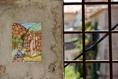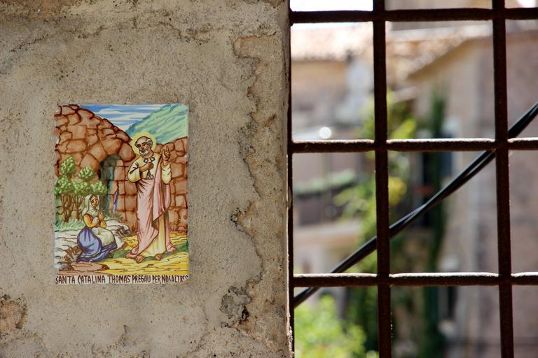 Keywords: tile tiles ceramic pattern decorative wall colorful ornament facade artfully art spain valldemossa mallorca catalina thomás helige legend narrative