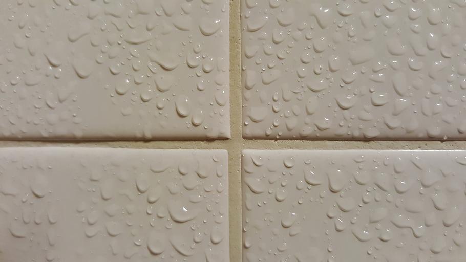 Keywords: tiles tiled wet bathroom bathroom tiles shower droplets water moisture condensation grout cross horizontal vertical