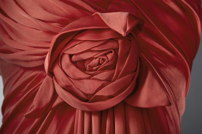 | Keywords: Till boken - utställningen Kunglig Vintage - Livrustkammaren - 87671.tif En mycket avancerad klänning sett i tillskärnings- sömnads- och påklädningssynpunkt Material Sidensatin möjligen crèpe satin karamellröd korallröd som går mot gult Korsett Som stomme finns en svart fjäderkorsett i tuskaftsvävtbomull Söm mitt fram i sidan samt två däremellan en söm påbakstycket och knäpps mitt bak med svarta hyskor och hakar tvåinsnitt på bakstycket samt 6 st vågräta över bysten och 2 st vidhöften Tunna fjädrar platta skenor gisningsvis i metall ärinstuckna i tunnlar som är sydda i sömsmånerna vid varje söm 2 stmitt fram men inga mitt bak vid knäppningen Sömsmånerna är zick-zackade med hack i midjan Korsetten slutar ca 15 cm nedanförmidjan i över- och nederkant finns en ca 1 cm bred svart bomullsspets Svarta hängband i sidorna samt två ripsband fastsatta iframsömmen med ca 1 5 cm mellanrum dessa går sedan ihop och bildarett liggande ruter-tecken är fastsatta i något bredare svarta resårband som antagligen ska gå runt bröstet och knäpps mittbak meden hyska och kake en extra hake finns fastsatt brevid den första Märkeslappen sitter överst mitt fram med texten H M DrottningensHovleverantör Märtaskolans FRANSKA AVDELNING STOCKHOLM Foder Utanpå korsetten sitter ett rött viscoisefoder med dragkedjamitt bak sidsöm vertikala bystinsnitt och insnitt bak horisontalainsnitt på framstycket mot sidsöm och på samma stycke på höften Iöverkanten sitter en bred snedremsa i samma tyg som yttertyget som är vikt över kanten denna binder alltså ihop korsett och foderdelen som fin övergång har sedan i brytningen mellan den röda snedremsan och detsvarta korsettyget satts en svart spets som redan nämnts tidigare Foderkjolen hänger sedan fritt rakt ner hela vägen och avslutas med en bred maskinsydd fåll och en slits mitt bak handsydda kanter och entrådträns som förstärkning Klänningstyget Om man sedan går till yttertyget är dendraperade kjolen och draperingen över bysten i 2 stycken Kjolen ärdubbel och börjar under bysten ner till vristerna el fotknölen ochsen upp igen med en gömd söm ca 30 cm upp från nederkanten Den har ensidsöm i höger sida på yttertyget på det inre tyget är sömmen mittbak medans knäppningen med dragkedjan sitter mellan mitt baksöm och sidlinje ca 4 cm från det yttre tygets dragkedja som sittter i sidsömmen Dragkjedjorna är fastsydda ända upp på korsettens överkandt och den yttre tygets har en hyska och hake överst Kjolens båda delarär prickstickade och fastkrejade mot foder och korsett i överkantenstrax under byste detta gäller framstycket bakstycket går ända upp Unge fär i knähöjd har en extra kjol sytts fast i det undre tyget handfållad och med slits i vänster sida Kjolens draperingsutgångspunkt är alltså på vänster framsida där mycket tyg är samlatoch faller fritt nertill samt har någon slags delning där den mestsynliga kanten endast är en bred inpressinig av stadkanten Överdelensdrapering börjar i lagda draperingsveck på vänster sida det ärdubbelt med den vikta kanten upptil vändsydd och faststofferad i nederkanten upptill är den endast fastsatt i vissa veck för att hålladem på plats Från dragkedjan i höger sida hänger den lös i ändan ärden ihoprynkad och två trådtrensar som sitter i vänster sida under tygdraperingen på snedremsan och fodret Där draperingen på kjolen är hårt ihoprynkad finns ytterligare ett mycket långt stycke tygihoprynkat och påsytt uppåt detta är sytt som en tunnel med bredfåll handsydd Denna lägges förmodligen över axeln och kanske hållspå plats genom att bystdraperingens lösa del knäpps över detta band om den läggs så är den ändå 45 cm längre än klänningen inne i fållen finns en trådträns gjord i knapphålssilke ca 2 cm lång dubbel Sammanlagt 4 cm Där detta band och kjoldraperingen möts sitter enstor tygblomma fast med ett broschspänne gjord i samma tyg som klänningen en trådträns finns dock gjord på draperingen Blomman har många kronblad och tre stjälkblad i samma tyg Ett axelband ca 3 cmbrett och vändsytt möjligen med något mellanlägg inuti sitter påhöger sida vid bröstet nedstucket under korsettspetsen går sedan över axeln och är fastsydd bredvid dragkedjan och korsettens hakar mitt bak på höger sida original caption Till boken / utställningen Kunglig Vintage <br/> Nyckelord Detalj Ros Siden Röd Drapering Kunglig Vintage decade 1960 LRK Margaretha fru Ambler Kunglig Vintage 2011-2012 Livrustkammaren Kunglig Vintage Kalmar slott 2013 Kalmar slott place of origin original filename lm_dig6827 68760 inventory number LRK 32130 87671 CC-BY-SA Erik Lernestål <gallery caption Different images of same object > File Till boken - utställningen Kunglig Vintage - Livrustkammaren - 87670 tif File Till boken - utställningen Kunglig Vintage - Livrustkammaren - 87668 tif File Till boken - utställningen Kunglig Vintage - Livrustkammaren - 87669 tif </gallery> Erik Lernestål Silk dresses Red Media contributed by LSH unmatched keyword Color images from Livrustkammaren 20th century clothing in Livrustkammaren Crepes fabric Media contributed by LSH 2013-10 |