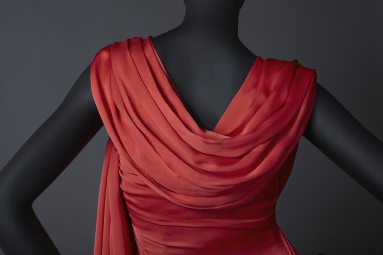 | Keywords: Till boken - utställningen Kunglig Vintage - Livrustkammaren - 87669.tif En mycket avancerad klänning sett i tillskärnings- sömnads- och påklädningssynpunkt Material Sidensatin möjligen crèpe satin karamellröd korallröd som går mot gult Korsett Som stomme finns en svart fjäderkorsett i tuskaftsvävtbomull Söm mitt fram i sidan samt två däremellan en söm påbakstycket och knäpps mitt bak med svarta hyskor och hakar tvåinsnitt på bakstycket samt 6 st vågräta över bysten och 2 st vidhöften Tunna fjädrar platta skenor gisningsvis i metall ärinstuckna i tunnlar som är sydda i sömsmånerna vid varje söm 2 stmitt fram men inga mitt bak vid knäppningen Sömsmånerna är zick-zackade med hack i midjan Korsetten slutar ca 15 cm nedanförmidjan i över- och nederkant finns en ca 1 cm bred svart bomullsspets Svarta hängband i sidorna samt två ripsband fastsatta iframsömmen med ca 1 5 cm mellanrum dessa går sedan ihop och bildarett liggande ruter-tecken är fastsatta i något bredare svarta resårband som antagligen ska gå runt bröstet och knäpps mittbak meden hyska och kake en extra hake finns fastsatt brevid den första Märkeslappen sitter överst mitt fram med texten H M DrottningensHovleverantör Märtaskolans FRANSKA AVDELNING STOCKHOLM Foder Utanpå korsetten sitter ett rött viscoisefoder med dragkedjamitt bak sidsöm vertikala bystinsnitt och insnitt bak horisontalainsnitt på framstycket mot sidsöm och på samma stycke på höften Iöverkanten sitter en bred snedremsa i samma tyg som yttertyget som är vikt över kanten denna binder alltså ihop korsett och foderdelen som fin övergång har sedan i brytningen mellan den röda snedremsan och detsvarta korsettyget satts en svart spets som redan nämnts tidigare Foderkjolen hänger sedan fritt rakt ner hela vägen och avslutas med en bred maskinsydd fåll och en slits mitt bak handsydda kanter och entrådträns som förstärkning Klänningstyget Om man sedan går till yttertyget är dendraperade kjolen och draperingen över bysten i 2 stycken Kjolen ärdubbel och börjar under bysten ner till vristerna el fotknölen ochsen upp igen med en gömd söm ca 30 cm upp från nederkanten Den har ensidsöm i höger sida på yttertyget på det inre tyget är sömmen mittbak medans knäppningen med dragkedjan sitter mellan mitt baksöm och sidlinje ca 4 cm från det yttre tygets dragkedja som sittter i sidsömmen Dragkjedjorna är fastsydda ända upp på korsettens överkandt och den yttre tygets har en hyska och hake överst Kjolens båda delarär prickstickade och fastkrejade mot foder och korsett i överkantenstrax under byste detta gäller framstycket bakstycket går ända upp Unge fär i knähöjd har en extra kjol sytts fast i det undre tyget handfållad och med slits i vänster sida Kjolens draperingsutgångspunkt är alltså på vänster framsida där mycket tyg är samlatoch faller fritt nertill samt har någon slags delning där den mestsynliga kanten endast är en bred inpressinig av stadkanten Överdelensdrapering börjar i lagda draperingsveck på vänster sida det ärdubbelt med den vikta kanten upptil vändsydd och faststofferad i nederkanten upptill är den endast fastsatt i vissa veck för att hålladem på plats Från dragkedjan i höger sida hänger den lös i ändan ärden ihoprynkad och två trådtrensar som sitter i vänster sida under tygdraperingen på snedremsan och fodret Där draperingen på kjolen är hårt ihoprynkad finns ytterligare ett mycket långt stycke tygihoprynkat och påsytt uppåt detta är sytt som en tunnel med bredfåll handsydd Denna lägges förmodligen över axeln och kanske hållspå plats genom att bystdraperingens lösa del knäpps över detta band om den läggs så är den ändå 45 cm längre än klänningen inne i fållen finns en trådträns gjord i knapphålssilke ca 2 cm lång dubbel Sammanlagt 4 cm Där detta band och kjoldraperingen möts sitter enstor tygblomma fast med ett broschspänne gjord i samma tyg som klänningen en trådträns finns dock gjord på draperingen Blomman har många kronblad och tre stjälkblad i samma tyg Ett axelband ca 3 cmbrett och vändsytt möjligen med något mellanlägg inuti sitter påhöger sida vid bröstet nedstucket under korsettspetsen går sedan över axeln och är fastsydd bredvid dragkedjan och korsettens hakar mitt bak på höger sida original caption Till boken / utställningen Kunglig Vintage <br/> Nyckelord Drapering Klänning Ryggringning Siden Röd Margaretha Ambler 1960-tal Kunglig Vintage Föremålsbild decade 1960 LRK Margaretha fru Ambler Kunglig Vintage 2011-2012 Livrustkammaren Kunglig Vintage Kalmar slott 2013 Kalmar slott place of origin original filename lm_dig6825 68760 inventory number LRK 32130 87669 CC-BY-SA Erik Lernestål <gallery caption Different images of same object > File Till boken - utställningen Kunglig Vintage - Livrustkammaren - 87670 tif File Till boken - utställningen Kunglig Vintage - Livrustkammaren - 87671 tif File Till boken - utställningen Kunglig Vintage - Livrustkammaren - 87668 tif </gallery> Erik Lernestål Silk dresses Red 1960s fashion Media contributed by LSH unmatched keyword Color images from Livrustkammaren 20th century clothing in Livrustkammaren Crepes fabric Media contributed by LSH 2013-10 |