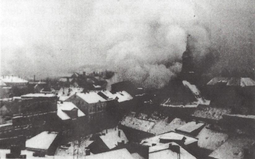 | Keywords: Tilsit (Januar 1945).jpg  Fotografie von Tilsit bei der Eroberung durch die Rote Armee Hans Dzieran Der letzte Kampf um Tilsit 23 Tilsiter Rundbrief 1994 S 16 “23 1945-01-20 unbekannt Stadtgemeinschaft Tilsit Anonymous-EU Tilsit Burning buildings East Prussia during World War II |