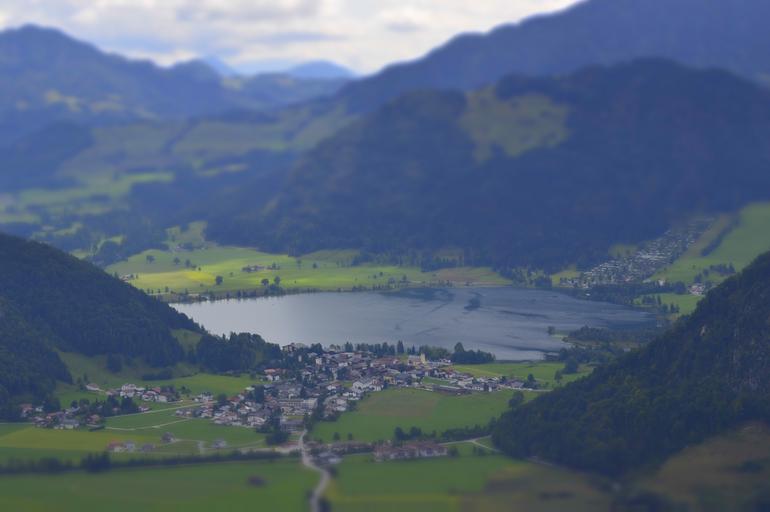 Keywords: tilt shift valley lake water nature landscape alpine bergsee mountains rock steep idyll hiking austria holiday more waters summer illusion climb tyrol