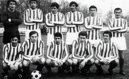| Keywords: Tim 1971.jpg sr-ec Екипа из 1971 године са гостовања у В басу Стоје Ђо ђевић Јефтић Рајковић иливојевић Пешић и Т ајковски Чуче Хаџић Радаковић Филиповски еловић и К истић 1971-09-08 оног афија ФК И РАКОВИЦА Бошко Пиљегић Custom license marker 2014 09 20 PD-Serbia Uploaded with UploadWizard FK IM Rakovica |