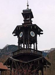 Keywords: time of day clock wood clock time time of time indicating clock face timepiece old digits historically wooden construction wood wood construction architecture building