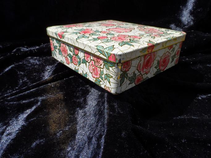 | Keywords: tin can roses old retro vintage vessel container box sheet ornament pattern housing casket cassette noble metal store storage decorative picturesque pink green golden cancel collect collector's item horten deposit romantic pretty gift past sentimental decoration cookie jar |