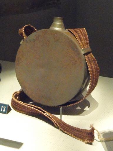 Keywords: Tin drum canteen with woven sling, c. 1861 - North Carolina Museum of History - DSC06001.JPG Tin drum canteen with woven sling c 1861 Exhibit in the North Carolina Museum of History Raleigh North Carolina USA I took this photograph 2011-10-05 11 18 06 Daderot Public domain Items in the North Carolina Museum of History Canteens