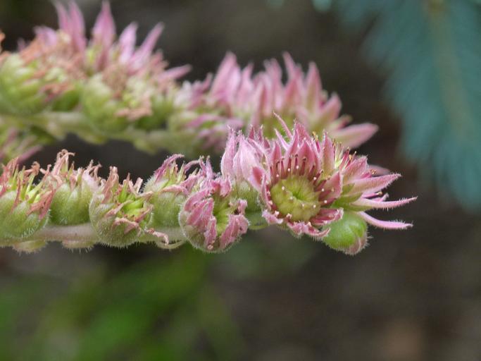 Keywords: tiny blossom buds hens and chick flower plant garden pink flower nature macro