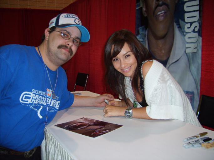 Keywords: TN Pics 006.jpg Danielle Harris and a fan at AdventureCon 2008 Own 2008-06-13 Greybackfenrir TN Pics 006 - cropped jpg Danielle Harris