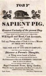 | Keywords: Toby the sapient pig.jpg en Poster for sapient pig http //johnjohnson wordpress com/2009/05/26/the-life-and-adventures-of-toby-the-sapient-pig/ Author 1817 Posters of the United Kingdom Performance posters 1810s posters Pigs in art PD-old-100 |