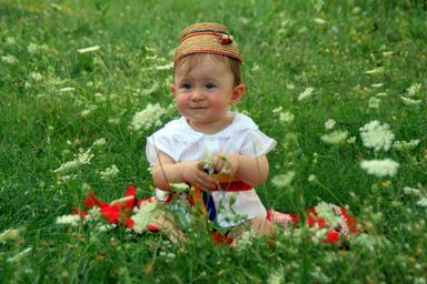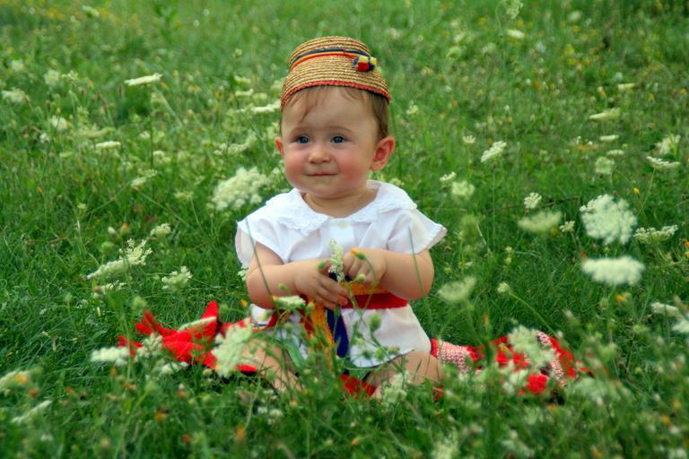 MAKE A MEME View Large Image toddler traditional costume flowers grass green